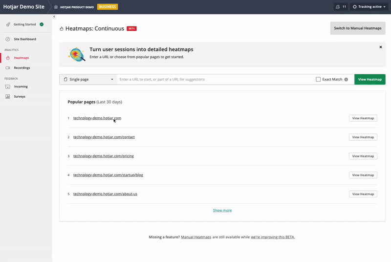 Die Heatmap auf Hotjar zeigt, welche Elemente Nutzer anklicken und wie sie sich auf Ihrem Onlineshop bewegen und scrollen. Das Tool veranschaulicht genau, was ignoriert wird oder welche Elemente auf Ihrer Website völlig übersehen werden. Zudem haben Sie die Möglichkeit ein direktes Feedback zu Ihrem Onlineshop zu erhalten, in dem Nutzer den zu bewertenden Teil Ihres Onlineshops markieren können.