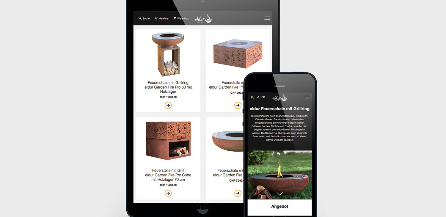 Der Custom Onlineshop für Grill und Feuerschalen wurde mit einem Bewegtbild (Cinemagraph), Produktevideos Produktebewertungstool, sowie einer Schnittstelle zu Google Shopping ausgestattet.